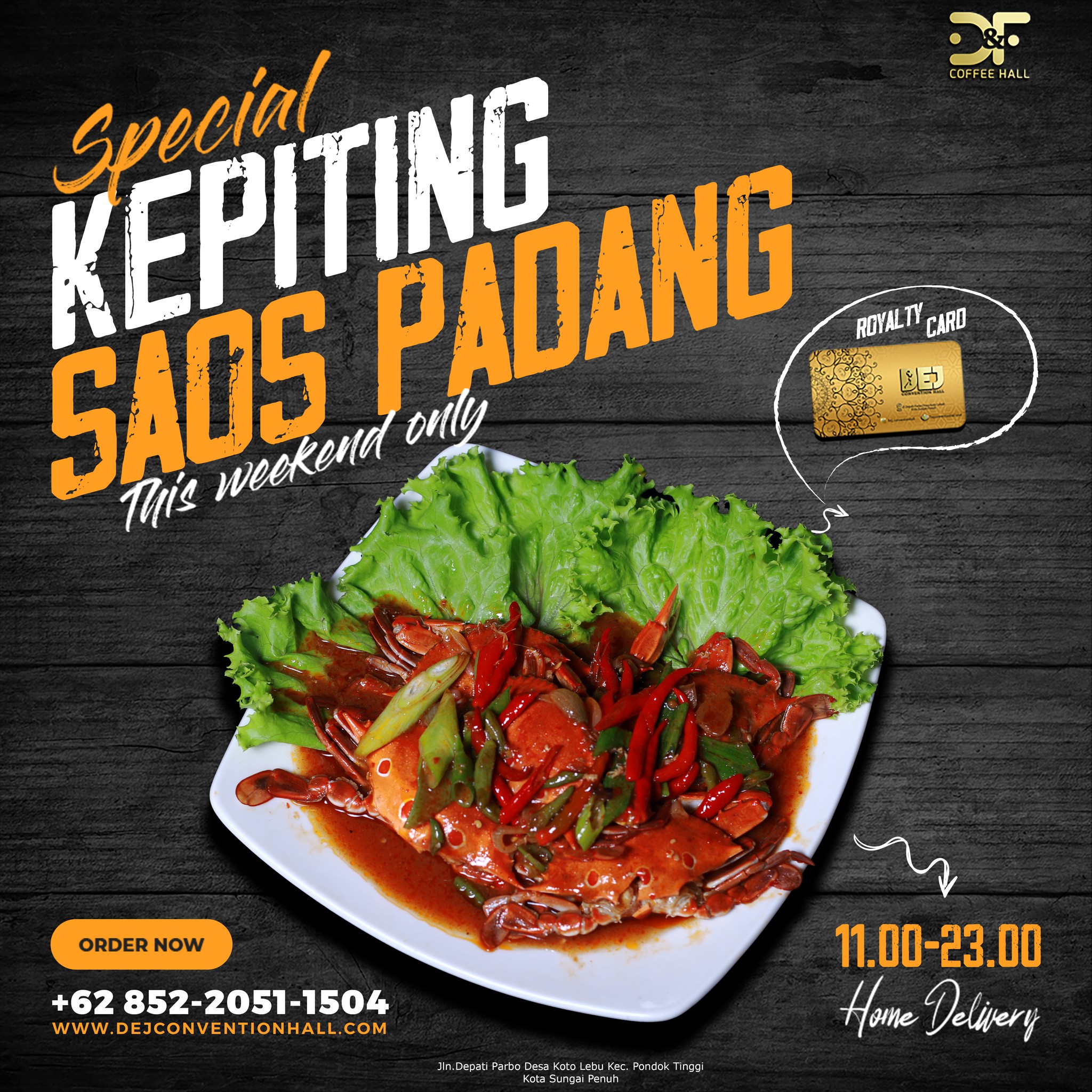 menu makanan favorit seafood yang wajib anda coba jika berkunjung ke dej convention hall atau d&f coffee hall. kepiting saos padang satu ini sangat di gemari pelanggan yang berkunjung ke tempat kami.